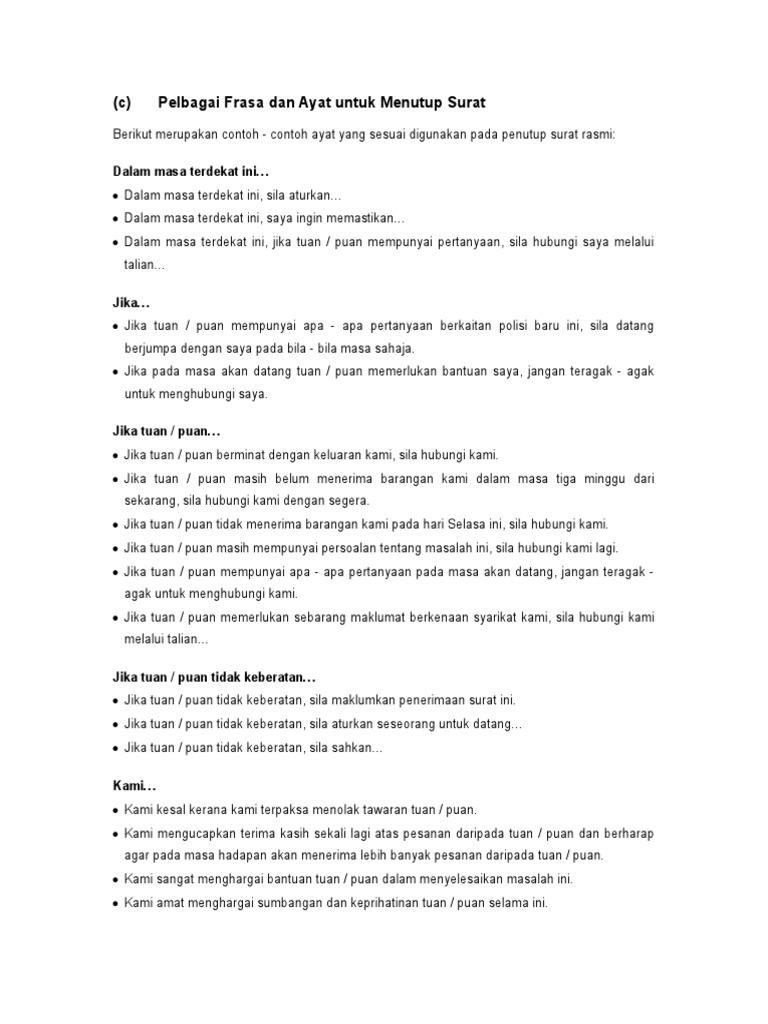 Contoh Ayat Keberatan